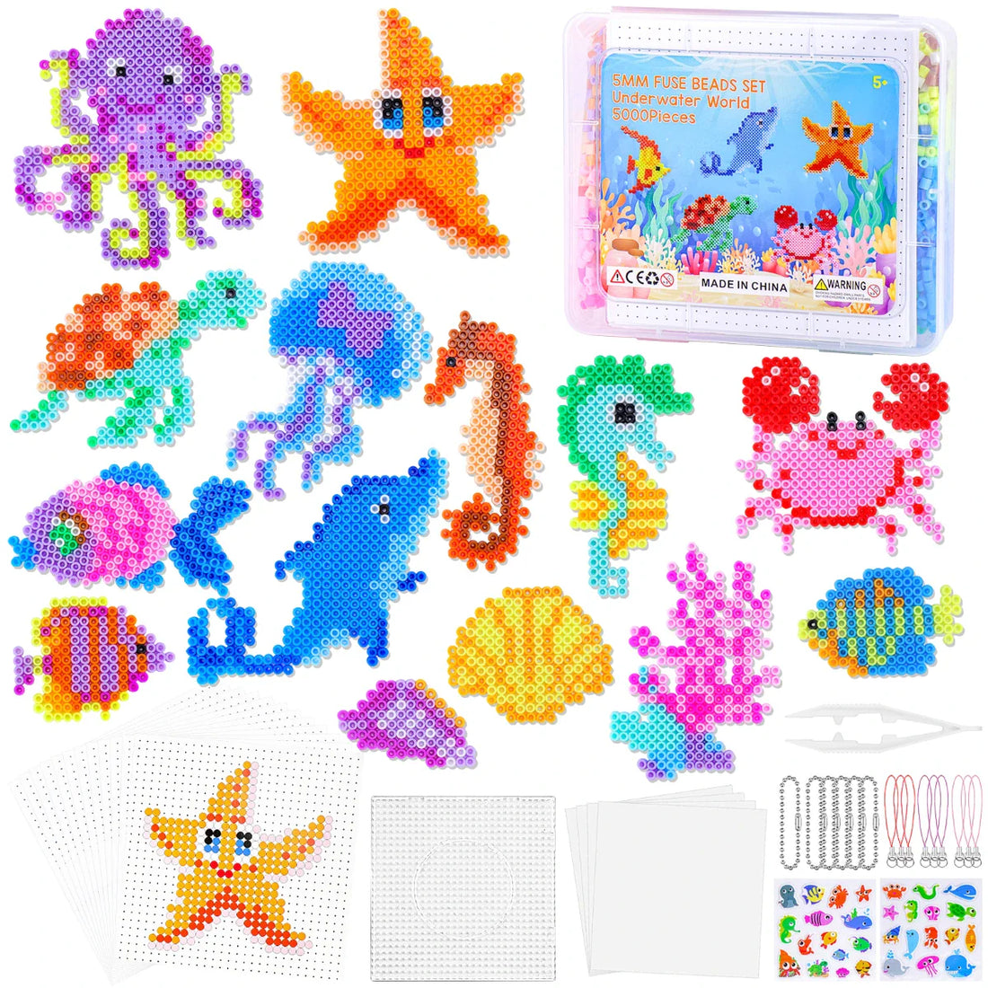 Homgaty Fuse Beads Kit - 5000 PCS 5mm Bead 15 Patterns Melty Fusion Beads Arts and Crafts Pearler Set Gifts for Kids, Christmas Easter Gifts for Kids (Animal)