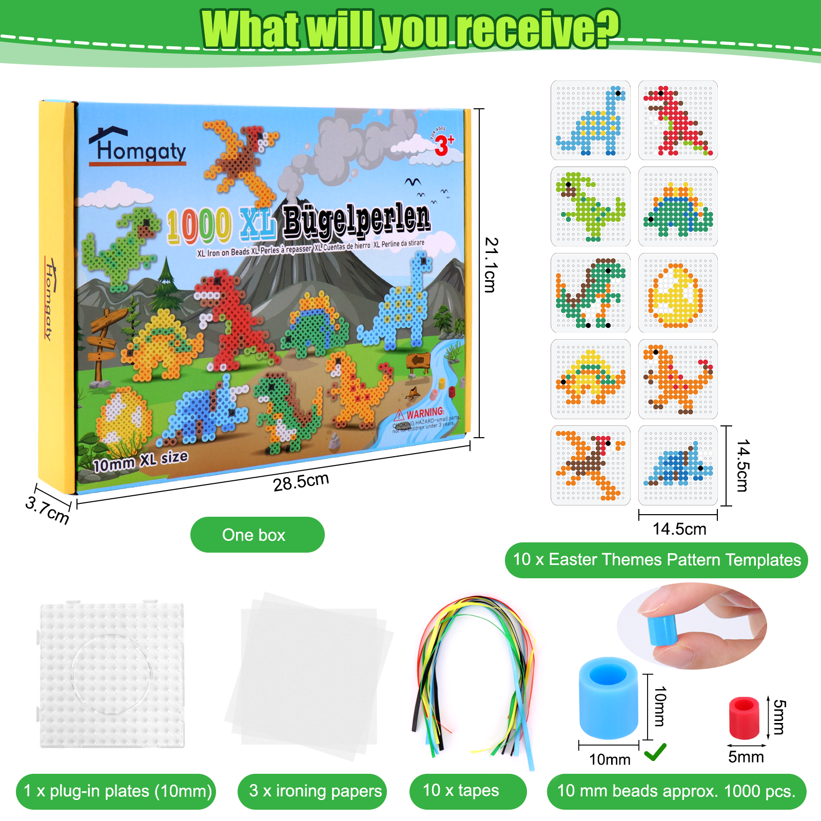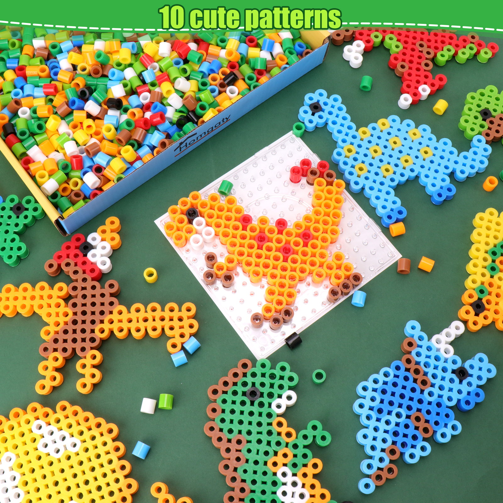 Homgaty 10MM Fuse Beads Kit, 1000 PCS XL Iron Beads for Kids with 12 Prehistoric Patterns and Ironing Paper, DIY Art Craft Toys Iron Beads,Water Fuse Beads Set(Dinosaur Adventure)