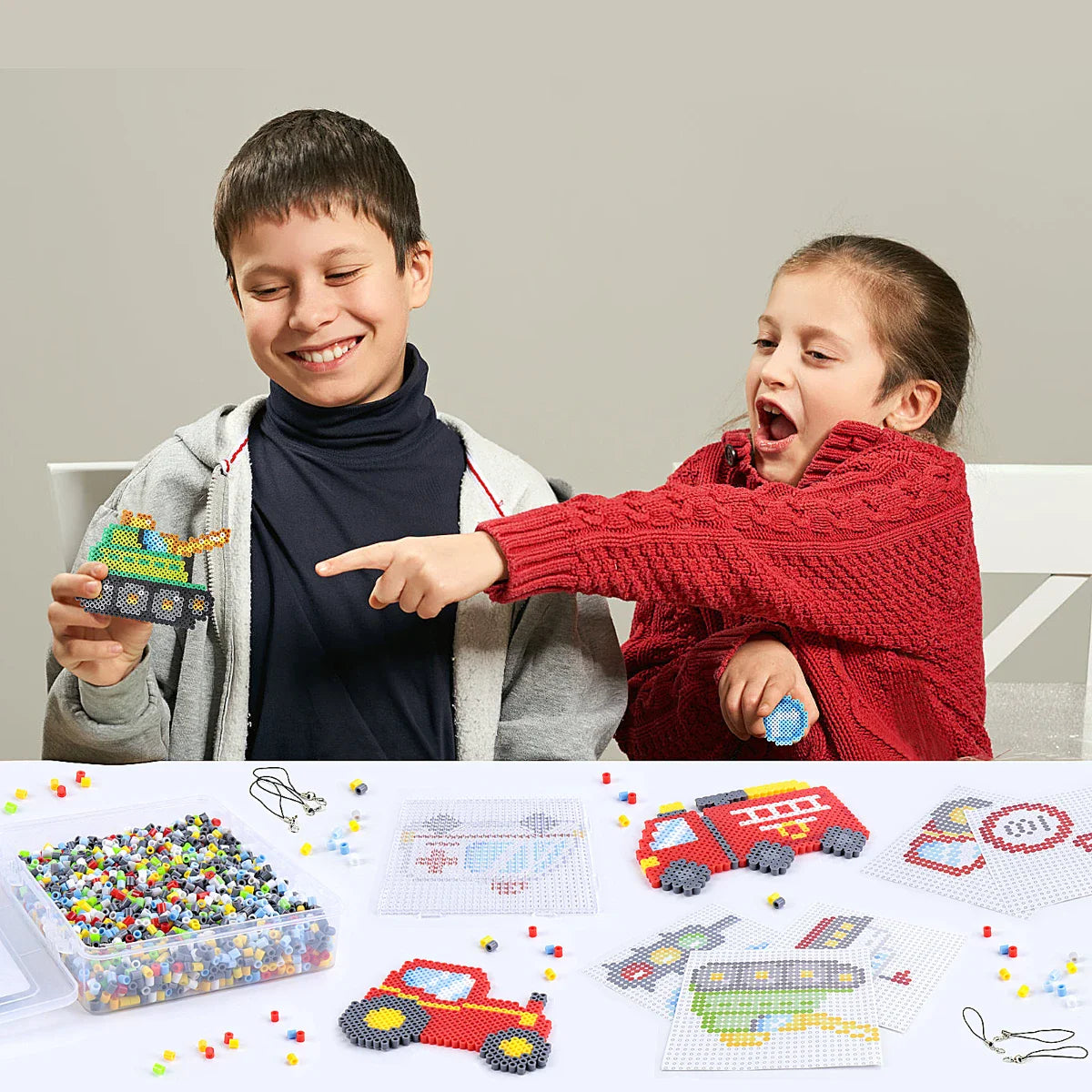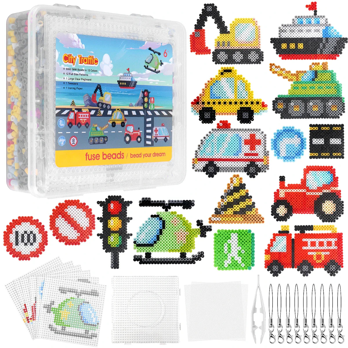 Homgaty Fuse Beads Kit - 5000 PCS 5mm Bead 18 Patterns Melty Fusion Beads Arts and Crafts Pearler Set Gifts for Kids, Christmas Easter Gifts for Kids (Transportation)