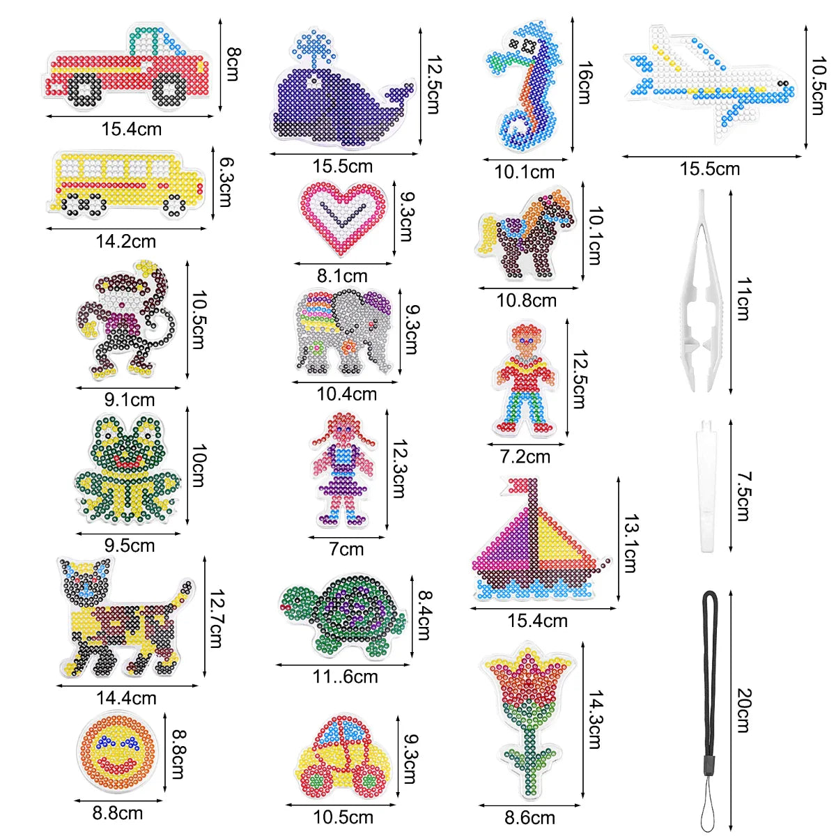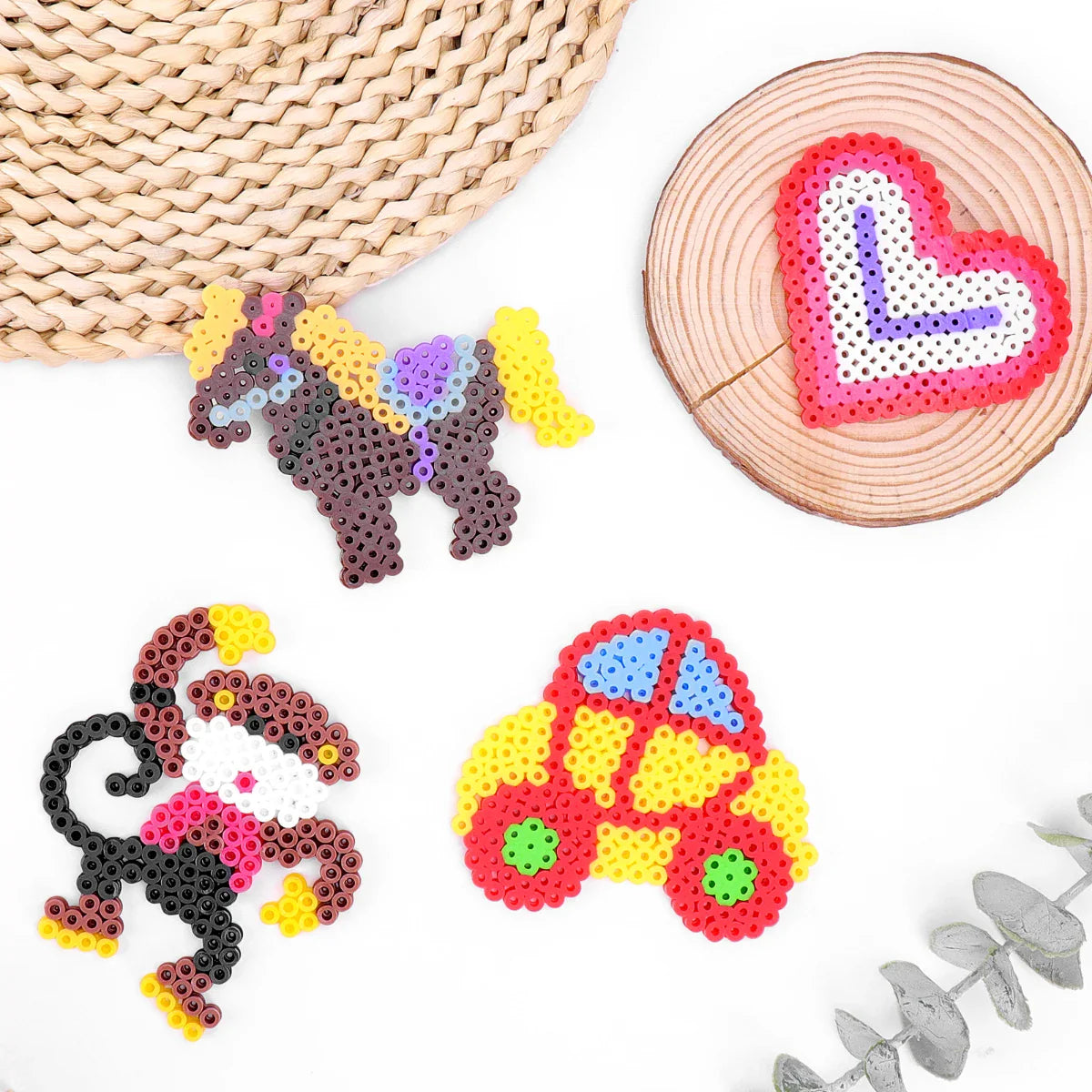 - Easy to Use: The Perler Bead shapes are easy to place and handle. The pegs are of a reasonable length, allowing you to position the beads neatly without them constantly falling off. The transparent boards make it much easier to see the white beads clearly. Kids can get inspiration from the included paper templates on how to design different animals or other patterns. The clear boards also enable them to replicate the designs precisely.