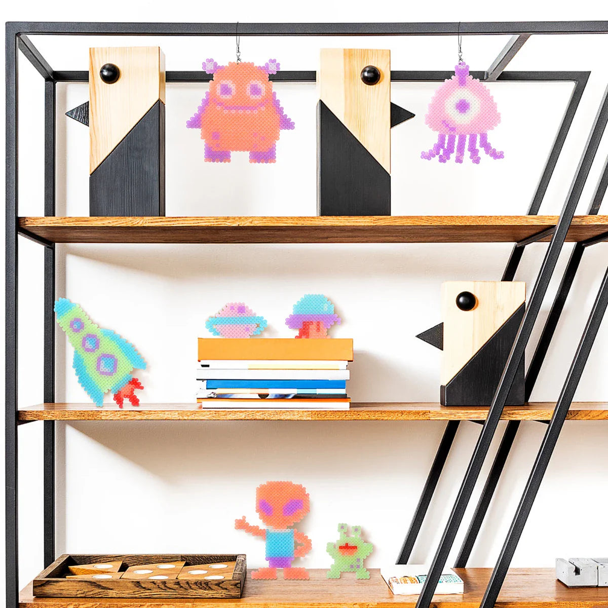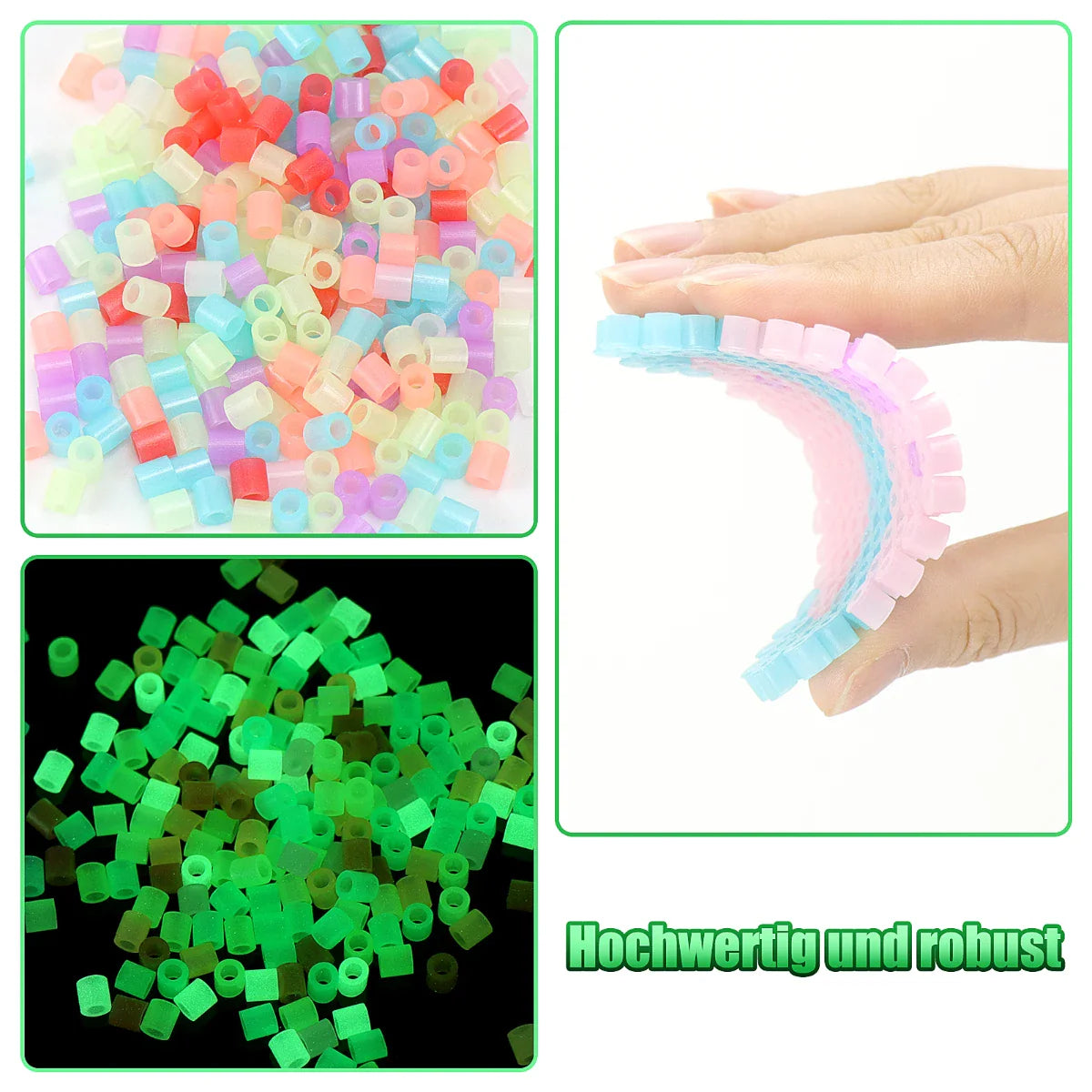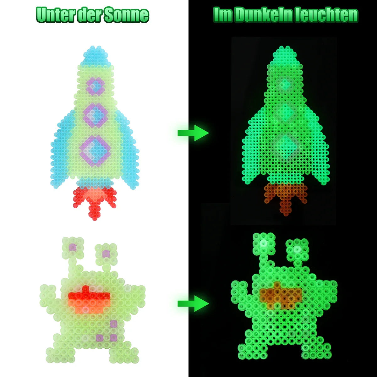 - 【Amazing Glow in the Dark Iron Beads】Fluorescent fused beads and UFO spaceship alien graphics set. Your kids will be surprised when finding their creations glow in the dark. It absolutely satisfies children¡¯s curiosity and encourages them to be imaginative. Add the luminous fuse beads into the crafts and make your designs special.