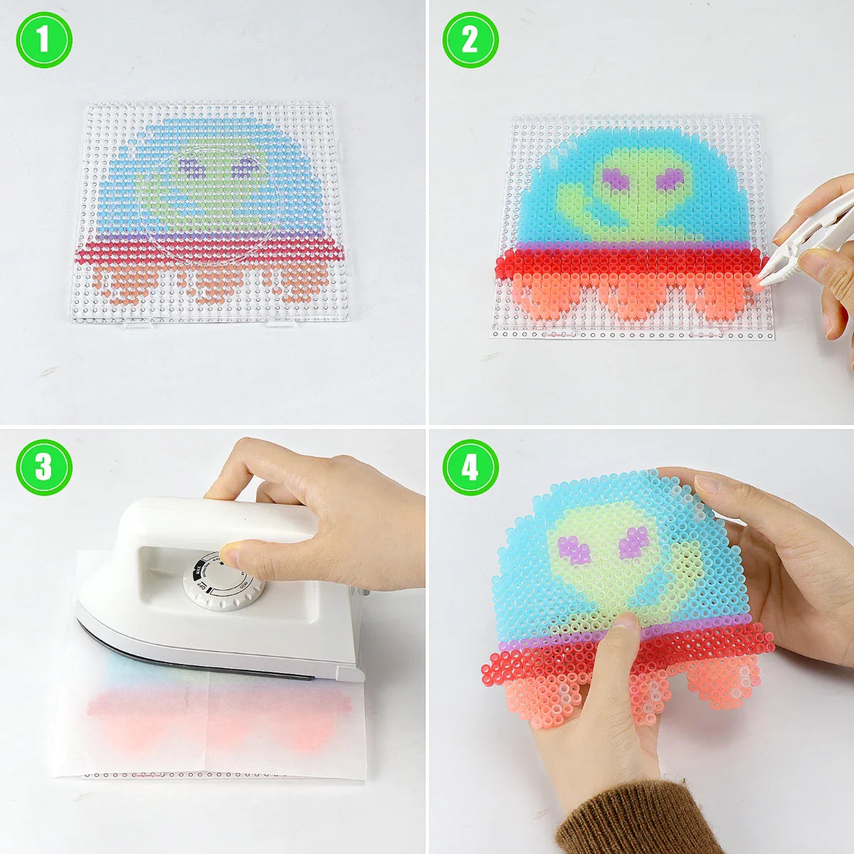 - 【Premium and Kid-safe Material】The Melty Beads Little Starter Kit made of high-quality plastic, very safe, plastic plates will not melt/bend when ironing. Well-made, durable, and practical. Colours: white, green, purple, blue, red, orange, and pink.