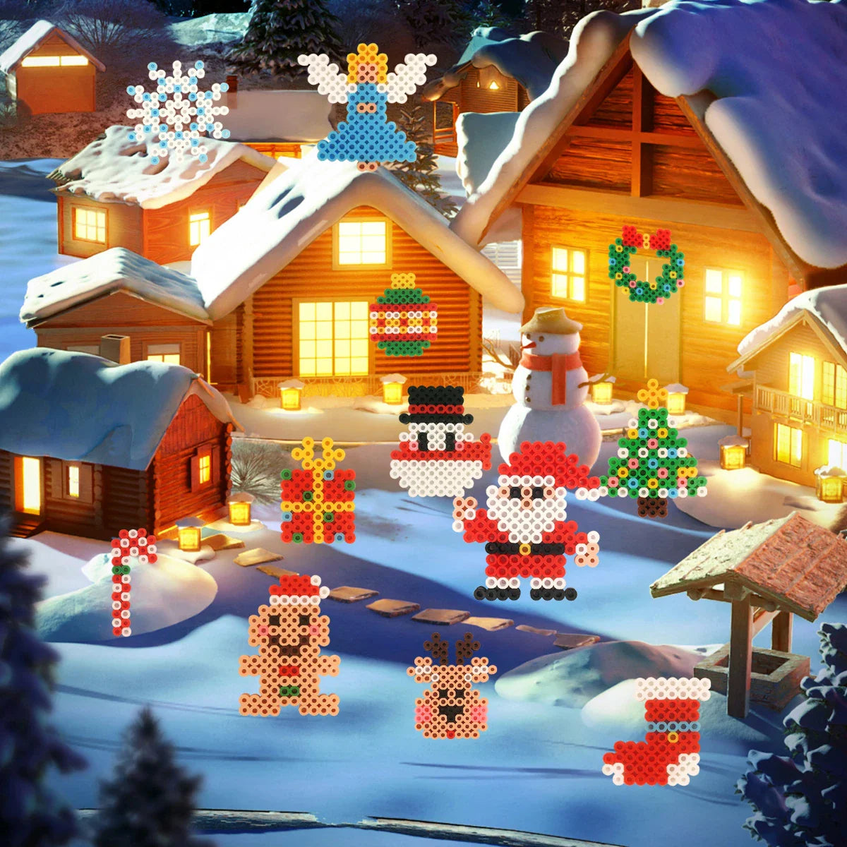 - 【 Scope of delivery 】Large Christmas fuse beads set with various accessories: approx. 1000 iron-on beads (10mm maxi) in 9 colours, 12 Christmas themed pattern templates, 1 x square fuse beads board, 3 x fuse beads ironing paper, and 12 ribbons. XXL extra-large beads for creative crafting fun for three-year-olds.
