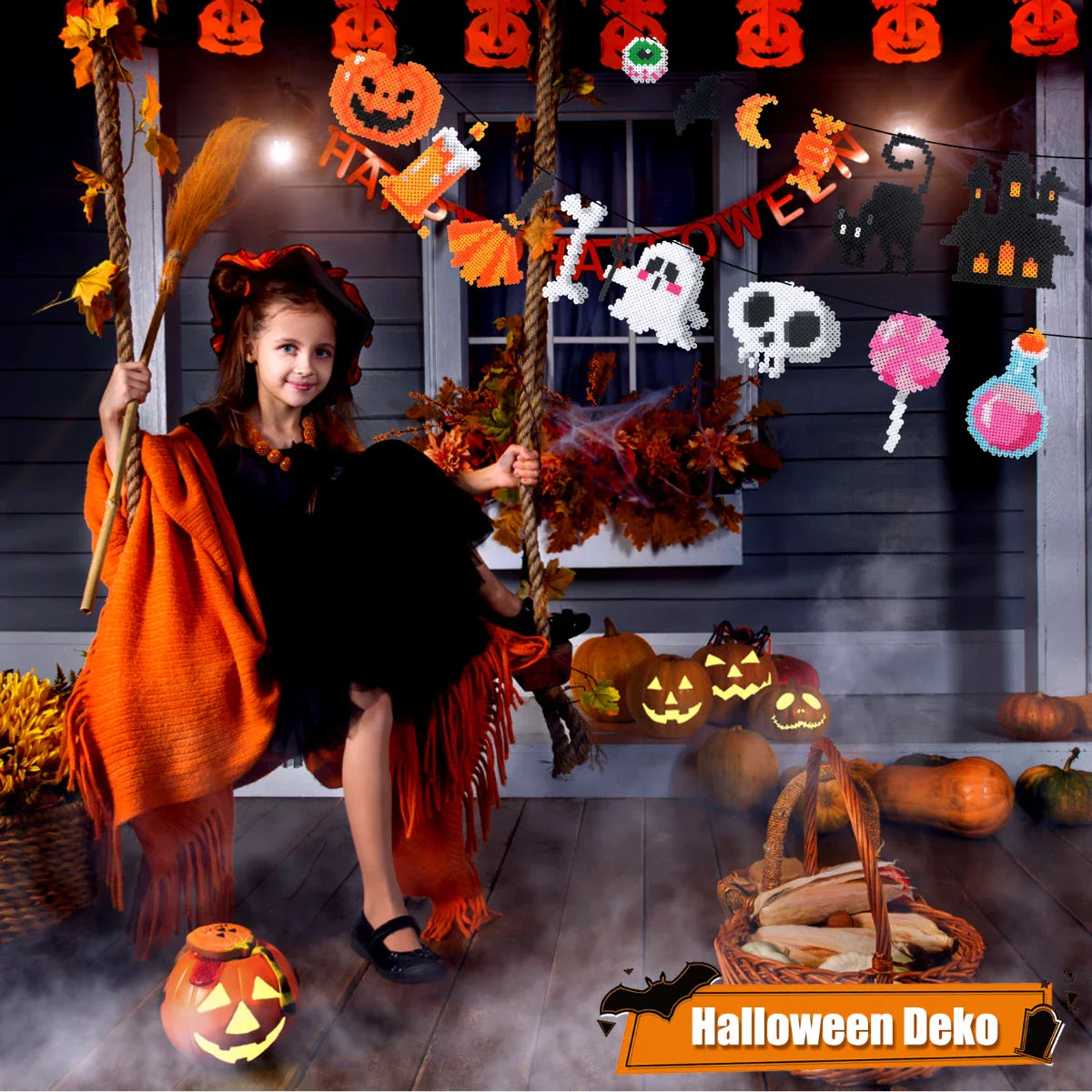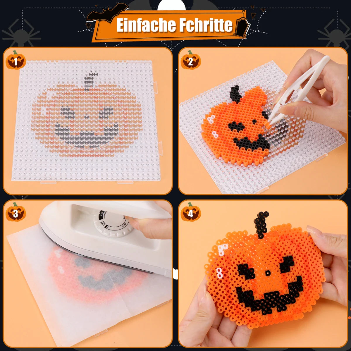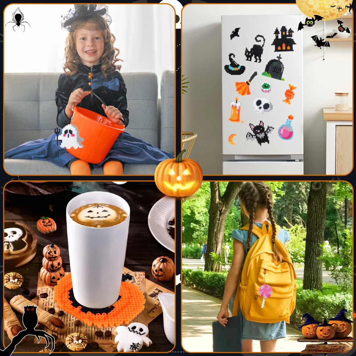 - 【Happy Halloween】Great fuse beads Halloween set with patterns in a stylish box that makes an excellent gift. The ones you can make yourself such as pumpkins, skulls, ghosts, bats, black cats, castles, candy, witches' brooms, witches' hats, candles, eyeballs, graveyards, and the moon are perfect ideas to spend time together.