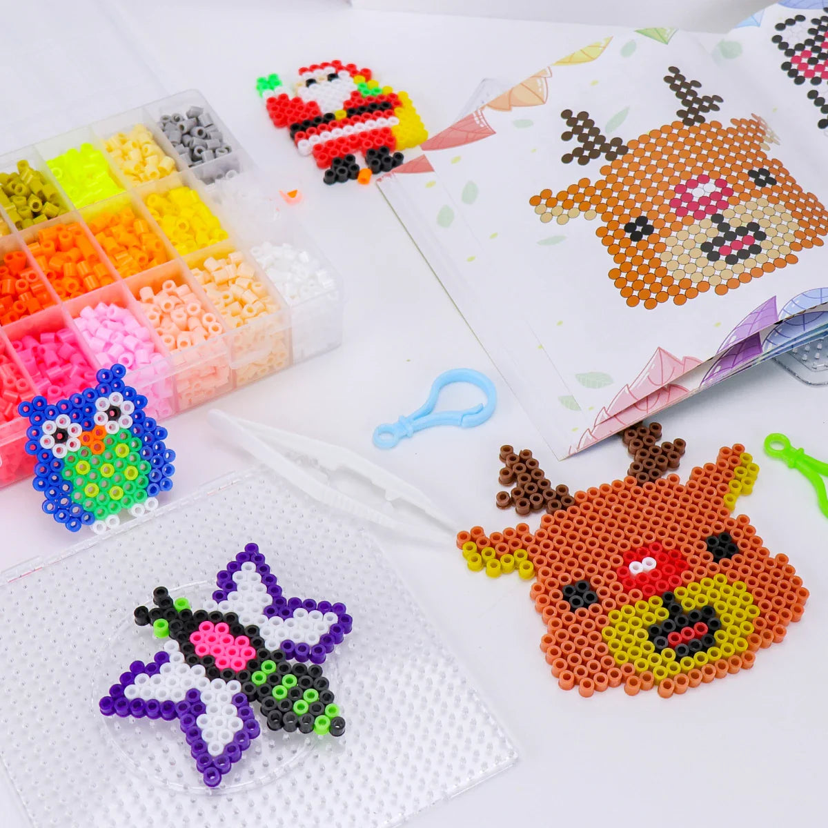 - The Perfect Gift for Kids: The Perler Bead set comes packaged in an attractive cardboard box. It makes a wonderful gift for both boys and girls who enjoy crafting. It's perfect as a Christmas, New Year's, birthday, Children's Day, or any other special occasion gift for your little artists. These charming artworks can be used as keychains, decorations, charms, or mobile phone accessories, adding a touch of personal style to everyday items.