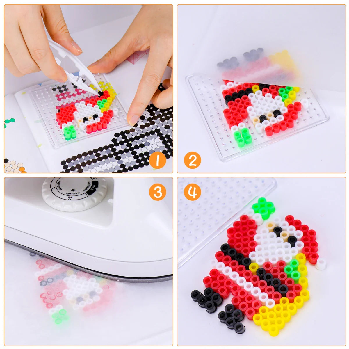 - Easy to Use: The Perler Bead templates can be placed on the peg board by following the instructions in the included pattern design booklet. Alternatively, children can let their imagination run wild and design new patterns on their own. Once the design is ready, the beads can be attached using a household iron (please note that the ironing process should be carried out by an adult).